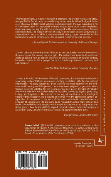 This study explores the evolution of Lomonosov's imposing stature in Russian thought from the middle of the eighteenth century to the closing years of the Soviet period. It reveals much about the intersection in Russian culture of attitudes towards the meaning and significance of science, as well as about the rise of a Russian national identity, of which Lomonosov became an outstanding symbol. Idealized depictions of Lomonosov were employed by Russian scientists, historians, and poets, among others, in efforts to affirm to their countrymen and to the state the pragmatic advantages of science to a modernizing nation. In setting forth this assumption, Usitalo notes that no sharply drawn division can be upheld between the utilization of the myth of Lomonosov during the Soviet period of Russian history and that which characterized earlier views. The main elements that formed the mythology were laid down in the eighteenth and nineteenth centuries; Soviet scholars simply added more exaggerated layers to existing representations.