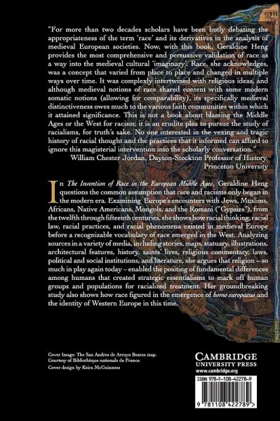 In The Invention of Race in the European Middle Ages, Geraldine Heng questions the common assumption that the concepts of race and racisms only began in the modern era. Examining Europe's encounters with Jews, Muslims, Africans, Native Americans, Mongols, and the Romani ('Gypsies'), from the 12th through 15th centuries, she shows how racial thinking, racial law, racial practices, and racial phenomena existed in medieval Europe before a recognizable vocabulary of race emerged in the West. Analysing sources in a variety of media, including stories, maps, statuary, illustrations, architectural features, history, saints' lives, religious commentary, laws, political and social institutions, and literature, she argues that religion - so much in play again today - enabled the positing of fundamental differences among humans that created strategic essentialisms to mark off human groups and populations for racialized treatment. Her ground-breaking study also shows how race figured in the emergence of homo europaeus and the identity of Western Europe in this time.