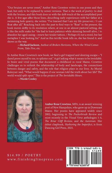 The Inviolable Hours, by Amber Rose Crowtree, is a chapbook of poems that follows a poet from childhood into adulthood in New England. Her poem, "A 1987 Photo of Female Destinies," won award through The Center for the Arts, Lake Sunapee Region, for contest "Snapshots in Time," final judge, Alexandrea Peary 2020, New Hampshire Poet Laureate.