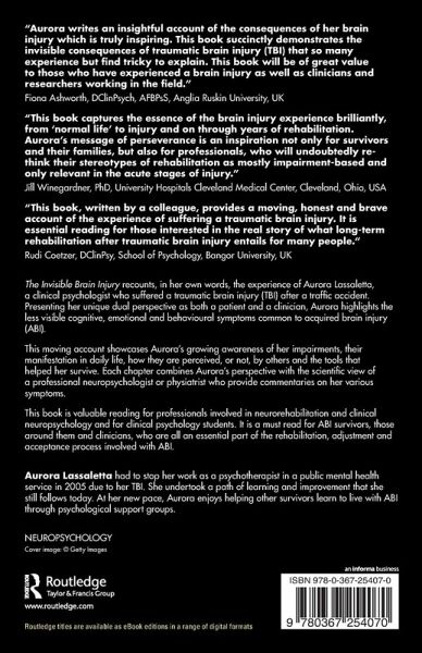 'Aurora Lassaletta writes an insightful and engaging account of the consequences of her brain injury which is truly inspiring. This book succinctly describes and demonstrates with such clarity the invisible consequences of traumatic brain injury (TBI) that so many experience but find it tricky to explain. Throughout the book she takes us on a journey through these consequences and how she comes to learn to work with them to lessen their impact on her day-to-day life. Her honesty and openness about the ongoing process of acceptance and reflections on identity within this context is so important in gaining insight into the psychological challenges faced following a TBI. This book will be of great value to those who have experienced a brain injury and their families as well as clinicians and researchers working in the field. I would encourage everyone to read this book who has experience of or interest in the impact of acquired brain injury. Thank you for sharing your experiences.' - Fiona Ashworth, DClinPsych, AFBPsS, Anglia Ruskin University, UK