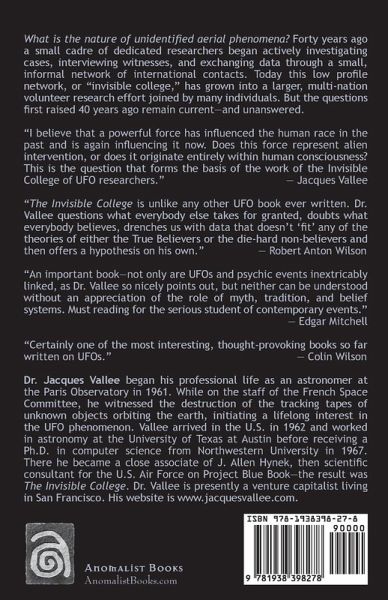 What is the nature of unidentified aerial phenomena? Forty years ago a small cadre of dedicated researchers began actively investigating cases, interviewing witnesses, and exchanging data through a small, informal network of international contacts. Today this low-profile network, or "invisible college," has grown into a larger, multi-nation volunteer research effort joined by many individuals. But the questions first raised 40 years ago remain current-and unanswered. "I believe that a powerful force has influenced the human race in the past and is again influencing it now. Does this force represent alien intervention, or does it originate entirely within human consciousness? This is the question that forms the basis of the work of the Invisible College of UFO researchers." -- Jacques Vallee "THE INVISIBLE COLLEGE is unlike any other UFO book ever written. Dr. Vallee questions what everybody else takes for granted, doubts what everybody believes, drenches us with data that doesn't 'fit' any of the theories of either the True Believers or the die-hard non-believers and then offers a hypothesis on his own." -- Robert Anton Wilson "An important book-not only are UFOs and psychic events inextricably linked, as Dr. Vallee so nicely points out, but neither can be understood without an appreciation of the role of myth, tradition, and belief system. Must reading for the serious student of contemporary events." -- Edgar Mitchell "Certainly one of the most interesting, thought-provoking books so far written on UFOs." -- Colin Wilson Dr. Jacques Vallee began his professional life as an astronomer at the Paris Observatory in 1961. While on the staff of the French Space Committee, he witnessed the destruction of the tracking tapes of unknown objects orbiting the earth, initiating a lifelong interest in the UFO phenomenon. Vallee arrived in the U.S. in 1962 and worked in astronomy at the University of Texas at Austin before receiving a Ph.D. in computer science from Northwestern University in 1967. There he became a close associate of J. Allen Hynek, then scientific consultant for the U.S. Air Force on Project Blue Book-the result was The Invisible College. Dr. Vallee is presently a venture capitalist living in San Francisco. His website is www.jacquesvallee.com.