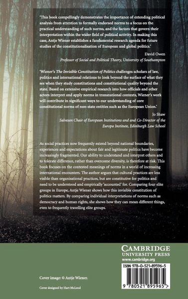 As social practices now frequently extend beyond national boundaries, experiences and expectations about fair and legitimate politics have become increasingly fragmented. Our ability to understand and interpret others and to tolerate difference, rather than overcome diversity, is therefore at risk. This book focuses on the contested meanings of norms in a world of increasing international encounters. The author argues that cultural practices are less visible than organisational practices, but are constitutive for politics and need to be understood and empirically 'accounted' for. Comparing four elite groups in Europe, Antje Wiener shows how this invisible constitution of politics matters. By comparing individual interpretations of norms such as democracy and human rights, she shows how they can mean different things, even to frequently travelling elite groups.