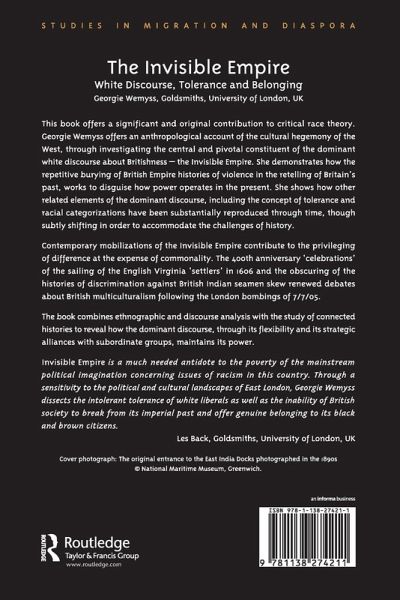 This book offers a significant and original contribution to critical race theory. Georgie Wemyss offers an anthropological account of the cultural hegemony of the West through investigations of the central and pivotal constituent of the dominant white discourse of Britishness - the Invisible Empire. She demonstrates how the repetitive burying of British Empire histories of violence in the retelling of Britain's past works to disguise how power operates in the present, showing how other related elements have been substantially reproduced through time to accommodate the challenges of history. The book combines ethnographic and discourse analysis with the study of connected histories to reveal how the dominant discourse maintains its dominance through its flexibility and its strategic alliances with subordinate groups.
