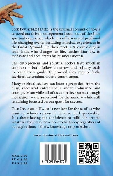 THE INVISIBLE HAND: Business, Success & Spirituality is the unusual and inspiring account of a driven entrepreneur who unexpectedly stumbled upon meditation - the rescue remedy that transformed his life at the height of his career. Meditation arrived just as burnout and stress were at their peak. A chance meeting with a 91-year-old guru from India, who taught him how to meditate, changed the course of his life. The more he practised, the more his career advanced at lightning speed. The author's journey reveals how stress and pressure can give way to mindful leadership, mindfulness in business, and a new balance between outer success and inner growth. Unlike most books that treat business and spirituality separately, this one brings them together with rare authenticity. It shows how the entrepreneur and spiritual seeker share the same qualities - faith, determination, sacrifice, and commitment - and how those qualities can be channelled into both business purpose and values. The book offers a guide to personal transformation and conscious business. It is a resource for anyone seeking purpose-driven leadership, wishing to succeed while staying true to their core values, and learning how to relieve stress in today's demanding world. AND HOW TO BE HAPPY. THE INVISIBLE HAND shows the way to success - a call to conscious leadership and inspiration in the workplace. It shows how to manage stress, apply success tips that actually work, and cultivate spirituality in the workplace - leading not only to personal growth but to lasting meaning and purpose at work.