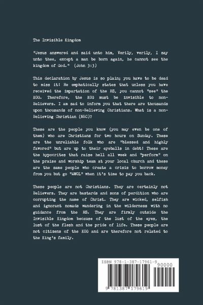 I am passionate about "marketplace ministry." I abandoned legalism and the laziness, comfort and apathy associated with being a Christian. For many years I "sat" on the gifts and talents afforded me by the grace of God. I was frustrated and irritated. I was bored with the regiment of Sunday mornings. I was invisible. I wanted more. I needed more. I asked God to set me free and He did it! I was given the gift of Mandate Ministries in 2008 and it is obvious to me that God spoke the same breath of life into other men who was tiring of "church" and longing for the Kingdom but didn't exactly know how to get there! We weren't invisible to man, we were invisible to God!