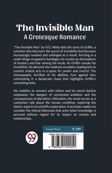 ""The Invisible Man"" by H.G. Wells tells the story of Griffin, a scientist who discovers the secret of invisibility but becomes increasingly isolated and unhinged as a result. Arriving in a small village wrapped in bandages, he creates an atmosphere of mystery and fear among the locals. As Griffin reveals his invisibility, his descent into madness escalates, leading him to commit violent acts in a quest for power and control. The townspeople, terrified of his abilities, turn against him, culminating in a desperate chase that highlights Griffin's unraveling state. His inability to connect with others and his moral decline emphasize the dangers of unchecked ambition and the consequences of alienation. Ultimately, the novel serves as a cautionary tale about the human condition, exploring the darker aspects of scientific exploration. It prompts readers to consider the ethical dilemmas that arise when knowledge is pursued without regard for its impact on society and relationships.