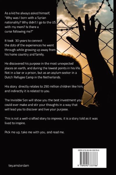 As a kid he always asked himself, "Why was I born with a Syrian nationality? Why didn't I go to the US with my mom? Is there a curse following me?" It took 30 years to connect the dots of the experiences he went through while growing up away from his home country and family. He discovered his purpose in the most unexpected places on earth, and during the lowest points in his life. Not in a bar or a prison, but as an asylum seeker in a Dutch Refugee Camp in the Netherlands. His story directly relates to 290 million children like him, and indirectly it is related to you. The Invisible Son will show you the best investment you could ever make and stir your thoughts in a way that will lead you to discover and live your purpose. This is not a well-crafted story to impress, it is a story told as it was lived to inspire. Pick me up, take me with you, and read me.