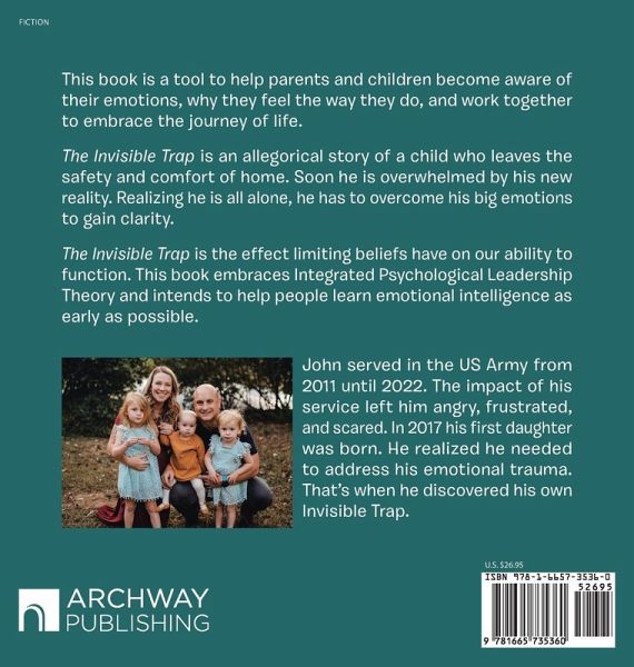 This book is a tool to help parents and children become aware of their emotions, why they feel the way they do, and work together to embrace the journey of life. The Invisible Trap is an allegorical story of a child who leaves the safety and comfort of home. Soon he is overwhelmed by his new reality. Realizing he is all alone, he has to overcome his big emotions to gain clarity. The Invisible Trap is the effect limiting beliefs have on our ability to function. This book embraces Integrated Psychological Leadership Theory and intends to help people learn emotional intelligence as early as possible.