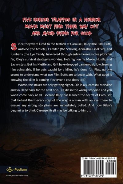 Five heroes trapped in a horror movie must find their way out-and avoid dying for good-in the second installment of this imaginative LitRPG series. Since they were lured to the festival at Carousel, Riley (the Film Buff), Antoine (the Athlete), Camden (the Scholar), Anna (the Final Girl), and Kimberly (the Eye Candy) have lived through entire horror movie plots. So far, Riley's survival strategy is working. He's high on his Moxie, Hustle, and Savvy stats. But his Mettle and Grit have dropped dangerously low, leaving him vulnerable. If he gets caught by a killer, he's done for. Plus, no one seems to understand what use Film Buffs are to begin with. What good is knowing the killer is coming if everyone else does too? Worse, the stakes are only getting higher. Die in a successful storyline and you'll be back for the next one. But die in the wrong storyline and you won't come back at all. Because Riley has learned the secret of Carousel: that behind them every step of the way is a man with an ax, there to ensure any wrong storylines are immediately culled. And now Riley's beginning to think Carousel itself may be talking to him . . .