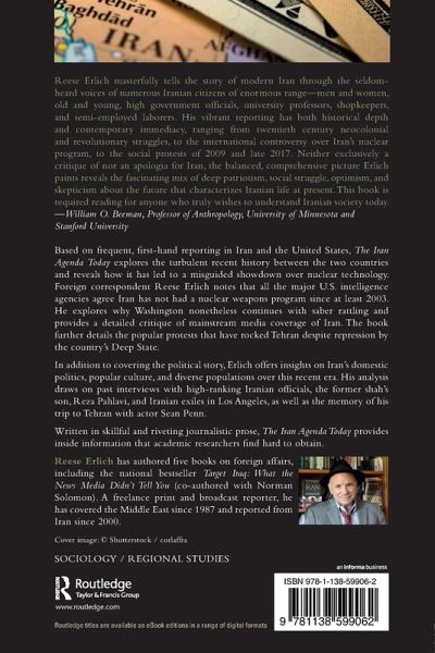 Based on frequent, first-hand reporting in Iran and the United States, The Iran Agenda Today explores the turbulent recent history between the two countries and reveals how it has led to a misguided showdown over nuclear technology. Foreign correspondent Reese Erlich notes that all the major U.S. intelligence agencies agree Iran has not had a nuclear weapons program since at least 2003. He explores why Washington nonetheless continues with saber rattling and provides a detailed critique of mainstream media coverage of Iran. The book further details the popular protests that have rocked Tehran despite repression by the country's Deep State. In addition to covering the political story, Erlich offers insights on Iran's domestic politics, popular culture, and diverse populations over this recent era. His analysis draws on past interviews with high-ranking Iranian officials, the former shah's son, Reza Pahlavi, and Iranian exiles in Los Angeles, as well as the memory of his trip to Tehran with actor Sean Penn. Written in skillful and riveting journalistic prose, The Iran Agenda Today provides inside information that academic researchers find hard to obtain.