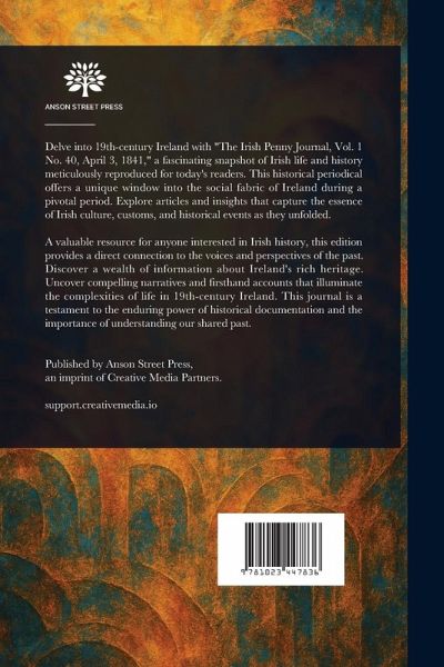 Delve into 19th-century Ireland with "The Irish Penny Journal, Vol. 1 No. 40, April 3, 1841," a fascinating snapshot of Irish life and history meticulously reproduced for today's readers. This historical periodical offers a unique window into the social fabric of Ireland during a pivotal period. Explore articles and insights that capture the essence of Irish culture, customs, and historical events as they unfolded. A valuable resource for anyone interested in Irish history, this edition provides a direct connection to the voices and perspectives of the past. Discover a wealth of information about Ireland's rich heritage. Uncover compelling narratives and firsthand accounts that illuminate the complexities of life in 19th-century Ireland. This journal is a testament to the enduring power of historical documentation and the importance of understanding our shared past. This work has been selected by scholars as being culturally important, and is part of the knowledge base of civilization as we know it. This work is in the public domain in the United States of America, and possibly other nations. Within the United States, you may freely copy and distribute this work, as no entity (individual or corporate) has a copyright on the body of the work. Scholars believe, and we concur, that this work is important enough to be preserved, reproduced, and made generally available to the public. We appreciate your support of the preservation process, and thank you for being an important part of keeping this knowledge alive and relevant.
