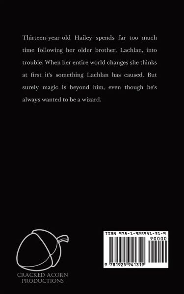 Genre: Children's Urban Fantasy (9+ years). Thirteen-year-old Hailey spends far too much time following her older brother, Lachlan, into trouble. When her entire world changes she thinks at first it's something Lachlan has caused. But surely magic is beyond him, even though he's always wanted to be a wizard. This story was written by an Australian author using Australian spelling.