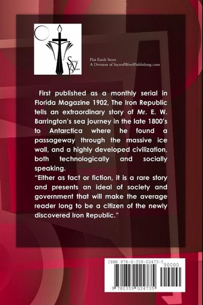 First published as a monthly serial in Florida Magazine 1902, The Iron Republic tells an extraordinary story of Mr. E. W. Barrington's sea journey in the late 1800's to Antarctica where he found a passageway through the massive ice wall, and a highly developed civilization, both technologically and socially speaking. "Either as fact or fiction, it is a rare story and presents an ideal of society and government that will make the average reader long to be a citizen of the newly discovered Iron Republic."
