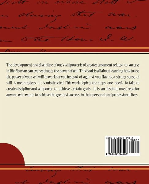 The development and discipline of one's willpower is of greatest moment related to success in life. No man can ever estimate the power of will. This book is all about learning how to use the power of your self will to work for you instead of against you. Having a strong sense of will is meaningless if it is misdirected. This work depicts the steps one needs to take to create discipline and willpower to achieve certain goals. It is an absolute must read for anyone who wants to achieve the greatest success in their personal and professional lives.