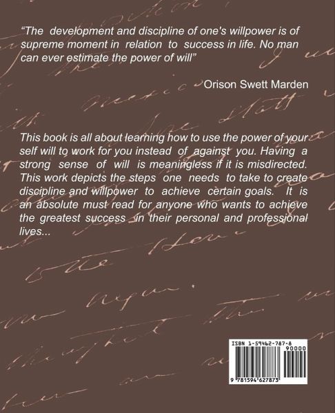 The development and discipline of one's willpower is of greatest moment related to success in life. No man can ever estimate the power of will. This book is all about learning how to use the power of your self will to work for you instead of against you. Having a strong sense of will is meaningless if it is misdirected. This work depicts the steps one needs to take to create discipline and willpower to achieve certain goals. It is an absolute must read for anyone who wants to achieve the greatest success in their personal and professional lives.