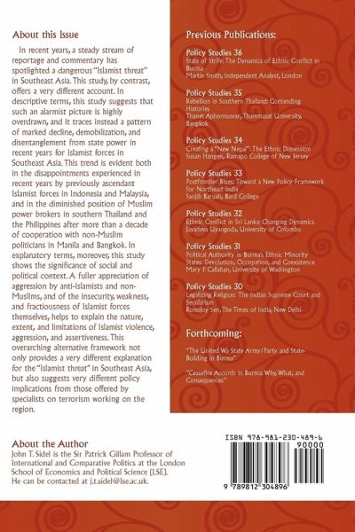 In recent years, a steady stream of reportage and commentary has spotlighted a dangerous "Islamist threat" in Southeast Asia. This study, by contrast, offers a very different account. In descriptive terms, this study suggests that such an alarmist picture is highly overdrawn, and it traces instead a pattern of marked decline, demobilization, and disentanglement from state power in recent years for Islamist forces in Southeast Asia. This trend is evident both in the disappointments experienced in recent years by previously ascendant Islamist forces in Indonesia and Malaysia, and in the diminished position of Muslim power brokers in southern Thailand and the Philippines after more than a decade of cooperation with non-Muslim politicians in Manila and Bangkok. In explanatory terms, moreover, this study shows the significance of social and political context. A fuller appreciation of aggression by anti-Islamists and non-Muslims, and of the insecurity, weakness, and fractiousness of Islamist forces themselves, helps to explain the nature, extent, and limitations of Islamist violence, aggression, and assertiveness. This overarching alternative framework not only provides a very different explanation for the "Islamist threat" in Southeast Asia, but also suggests very different policy implications from those offered by specialists on terrorism working on the region.