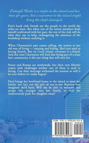 Eveleigh's Books is a staple on the island and has been for years, but a newcomer to the island might bring the shop's downfall. Evie's book club friends are the people in the world she relies on most. But when one of the newer members finds herself confronted with her past, the rest of the club will do what they can to help, endangering the existence of the bookshop without realising it. When Charmaine's past comes calling, she reverts to her old way of living - running and hiding. She's not used to having friends. But on Coral Island, everyone is a friend. And this time Charmaine will find that being part of a close knit community is the one thing that will save her. Penny and Rowan are newlyweds, but their new lifestyle comes with challenges neither one of them is used to facing. Can their marriage withstand the tension or will it be over before it's really begun? Dani brings her boyfriend home to the island to meet her family, but he's not the sort of son-in-law Beatrice ever imagined she'd have. Will she be able to welcome and accept this stranger into her family, or will she inadvertently push her daughter away? The Coral Island series is full of family drama, sweet romance, renewal, mystery, and friendship. This is the fifth book in the series and ends on a cliff hanger. Be sure to read books 1-4,before starting this one.