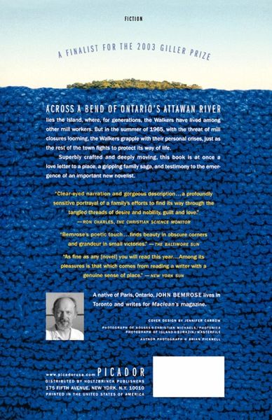 Longlisted for the Man Booker Prize A Finalist for the 2003 Giller Prize Across a bend of Ontario's Attawan River lies the Island, where, for generations, the Walkers have lived among other mill workers. But in the summer of 1965, with the threat of mill closures looming, the Walkers grapple with their personal crises, just as the rest of the town fights to protect its way of life. Superbly crafted and deeply moving, this book is at once a love letter to a place, a gripping family saga, and testimony to the emergence of an important new novelist.