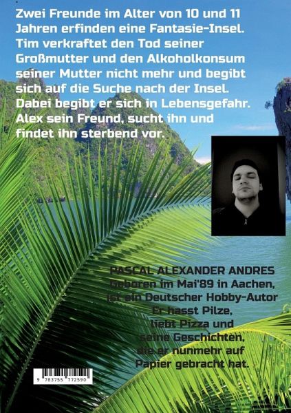 Zwei Freunde im Alter von10 und 11 Jahren erfindeneine Fantasie-Insel.Tim verkraftet den Tod seiner Großmutter und denAlkoholkonsum seiner Mutter nicht mehr undbegibt sich auf die Suche nach der Insel.Dabei begibt er sich in Lebensgefahr.Alex sein Freund, sucht ihnund findet ihn sterbend vor.