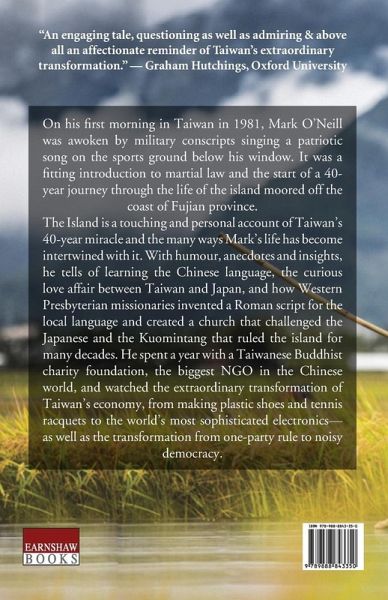 On his first morning in Taiwan in 1981, Mark O'Neill was awoken by military conscripts singing a patriotic song on the sports ground of their camp. It was a fitting introduction to martial law and the start of his 40-year journey through the island moored off the coast of Fujian province. Next came learning the Chinese language - traditional characters only, please - and the curious love affair between Taiwan and Japan, the former colonial power, remembered in statues, buildings, and sumo tournaments on television. In a history museum, he learned how Western Presbyterian missionaries invented a Roman script for the Taiwan language and created a church that challenged the Japanese and the Kuomintang that ruled the island for many decades after the end of World War II. He spent a year with a Taiwanese Buddhist charity foundation, the biggest NGO in the Chinese world, and explored the museum in Taipei which holds the most exquisite of the art treasures from Beijing's Imperial Palace. He watched the extraordinary transformation of Taiwan's economy, from making plastic shoes and tennis racquets to the world's most sophisticated electronics and semi-conductors - and also the transformation of the island from one party rule to noisy democracy. This is a very readable account of the island's 40-year miracle - touching, personal and full of humour, anecdotes and insights.