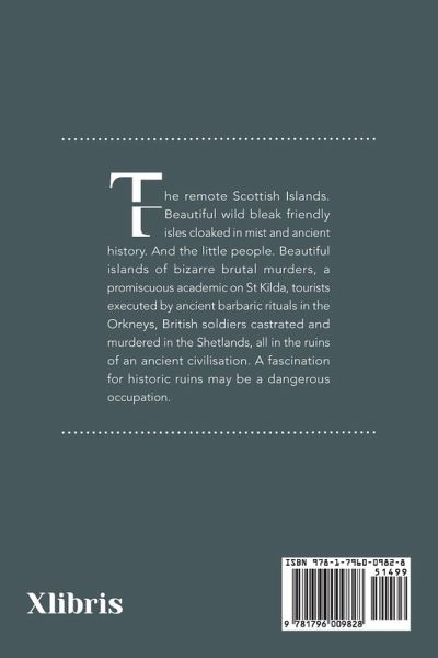 The remote Scottish Islands. Beautiful wild bleak friendly isles cloaked in mist and ancient history. And the little people. Beautiful islands of bizarre brutal murders, a promiscuous academic on St Kilda, tourists executed by ancient barbaric rituals in the Orkneys, British soldiers castrated and murdered in the Shetlands, all in the ruins of an ancient civilisation. A fascination for historic ruins may be a dangerous occupation.