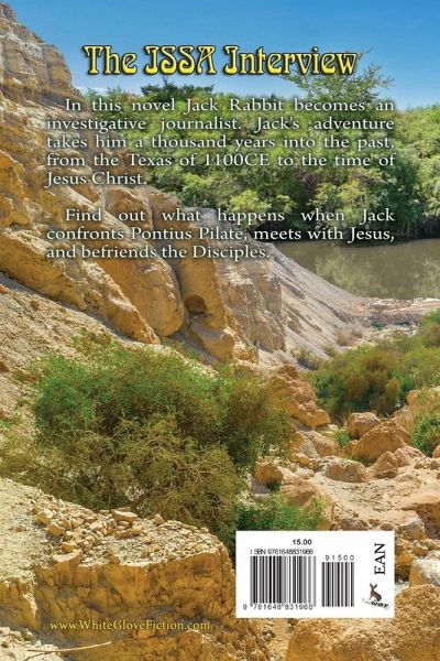 The ISSA Interview is an imagined interview of Jesus Christ by Jack Rabbit, hero of the White Glove Fiction series. Jack Rabbit is a changeling who can travel through time. He undertook to do this interview after learning that children in contemporary times wonder what happened to Jesus between his ages of 12 and 29. The Christian bible says nothing about Jesus during those formative years in a person's life. In this novel, Jack Rabbit becomes an investigative journalist. Jack's adventure takes him a thousand years into the past, from the Texas of 1100CE to the time of Jesus Christ. As always Jack gets into trouble with the locals and still takes advantage of the situation. Find out what happens when Jack confronts Pontius Pilate, compete as a Roman gladiator in the arena games, meets with Jesus, and befriends the Disciples. The Issa Interview is the fourth in an ongoing series on the adventures of Jack Rabbit. Jack is a changeling who can travel through time. He uses his extraordinary power to learn about things that have happened in the past and have yet to happen in the future. A large jackrabbit, two feet long from nose to tail and ears of almost equal length, was moving away from its nest in a hollow in the desert sand. Its daily scrounging for edible sprouts, to maintain a body weight of nine pounds, had begun. The jackrabbit - technically a hare - weaved around the cactus and sage brush, its palpitating nose directing the rest of its body westward, toward the high ground.