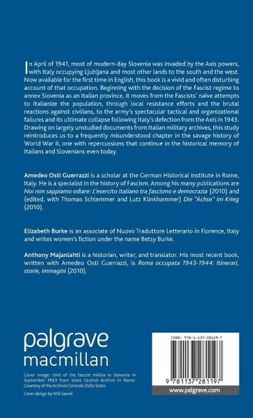 This powerful study offers a vivid and often disturbing account of the Italian army's occupation of Slovenia during World War II. It moves from the decision of the Italians to annex Slovenia in 1941, through local resistance and brutal reaction against civilians, to the army's ultimate collapse following Italy's defection from the Axis.