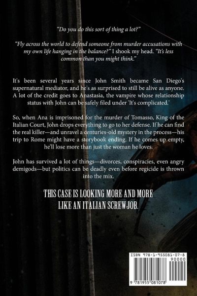 "Do you do this sort of thing a lot?" "Fly across the world to defend someone from murder accusations with my own life hanging in the balance?" I shook my head. "It's less common than you might think." It's been several years since John Smith became San Diego's supernatural mediator, and he's as surprised to still be alive as anyone. A lot of the credit goes to Anastasia, the vampire whose relationship status with John can be safely filed under 'It's complicated.' So, when Ana is imprisoned for the murder of Tomasso, King of the Italian Court, John drops everything to go to her defense. If he can find the real killer-and unravel a centuries-old mystery in the process-his trip to Rome might have a storybook ending. If he comes up empty, he'll lose more than just the woman he loves. John has survived a lot of things-divorces, conspiracies, and angry demigods-but politics can be deadly even before regicide is thrown into the mix. This case is looking more and more like an Italian screwjob.