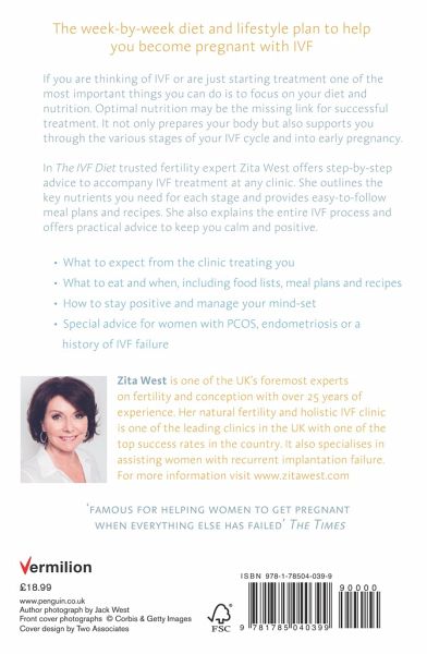 1. 1: Acknowledgements 2. 2: Foreword by Dr George Ndukwe 3. 3: Preface 4. 4: Introduction 5. 1: Understanding the IVF Journey 6. * 1: Fertility: The Basics * 2: Starting Your IVF Journey * 3: The IVF Process 7. 2: IVF and Your Lifestyle 8. * 4: Transform Your Lifestyle * 5: Nurture Your Relationships * 6: Build Your Energy Reserves and Reduce Stress * 7: Maintain a Positive Mindset * 8: Lifestyle Factors That Affect IVF 9. 3: Preparing for IVF 10. * 9: The Importance of Nutrition * 10: Ten Egg and Sperm Health * 11: Nourishing Your Digestive System * 12: Fertility-influencing Conditions 11. 4: The Countdown Nutrition Plan 12. * 13: Clearing the System * 14: Balancing Your Blood Sugar * 15: Your Acid-Alkaline Balance * 16: Reducing Inflammation 13. 5: Diet and Your IVF Cycle 14. * 17: Starting an IVF Cycle * 18: Egg Collection * 19: Embryo Transfer and Implantation * 20: The Two-week Wait * 21: When IVF is Successful * 22: When IVF Fails 15. 23: Appendix: Commonly Asked Questions 16. 24: About the Zita West Fertility Clinic 17. 25: Index
