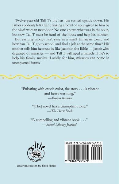 Twelve-year-old Tall T's life has just turned upside down. His father suddenly leaves the family after drinking a bowl of bewitched soup given him by the obeah woman who lives next door. With his father no longer with them, Tall T must be head of the house and help his mother take care of his five brothers and sisters. But earning money isn't easy in a small Jamaican town. How can Tall T go to school and earn money at the same time? His mother tells him he must be like Jacob in the Bible -- Jacob who dreamed of miracles -- and Tall will need a miracle if he is to help his family survive. Luckily for him, miracles can come in unexpected forms.