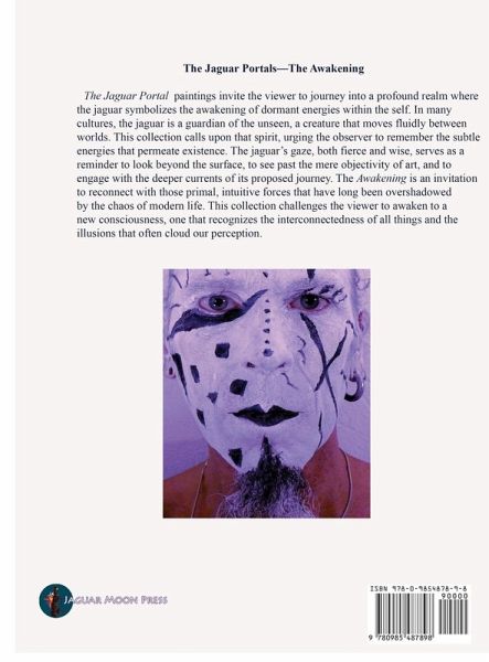 The Jaguar Portals is a collection of paintings and their story which invites viewers into a profound realm. Here the jaguar symbolizes the awakening of dormant energies within the self. In many cultures, the jaguar is a guardian of the unsee, a creature that moves fluidly between worlds. This collection calls upon that spirit, urging the observer to remember the subtle energies that permeate existence. the jaguar's gaze both fierce and wise, serves as a reminder to look beyond the surface, to see past the mere objectivity of art, and to engage with the deeper currents of its proposed journey.…mehr