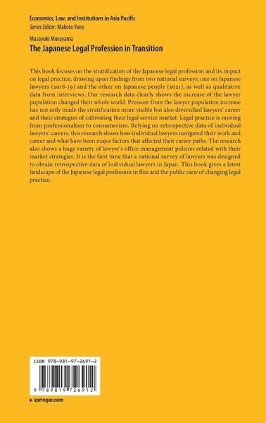 This book focuses on the stratification of the Japanese legal profession and its impact on legal practice, drawing upon findings from two national surveys, one on Japanese lawyers (2018-19) and the other on Japanese people (2021), as well as qualitative data from interviews. Our research data clearly shows the increase of the lawyer population changed their whole world. Pressure from the lawyer population increase has not only made the stratification more visible but also diversified lawyers' career and their strategies of cultivating their legal service market. Legal practice is moving from professionalism to consumerism. Relying on retrospective data of individual lawyers' careers, this research shows how individual lawyers navigated their work and career and what have been major factors that affected their career paths. The research also shows a huge variety of lawyer's office management policies related with their market strategies. It is the first time that a national survey of lawyers was designed to obtain retrospective data of individual lawyers in Japan. This book gives a latest landscape of the Japanese legal profession in flux and the public view of changing legal practice.