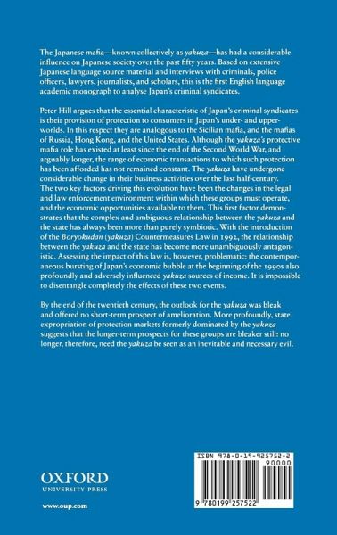 The Japanese mafia - known collectively as yakuza - has had a considerable influence on Japanese society over the past fifty years. Based on extensive interviews with criminals, police officers, lawyers, journalists, and academics, this is the first academic analysis in English of Japan's criminal syndicates.