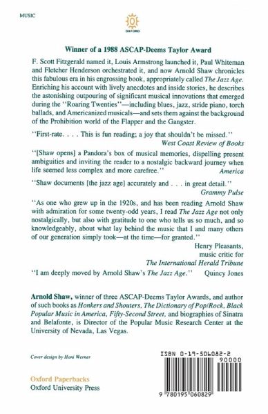 It all happened in America in the 1920s: blues, jazz, band music, torch ballards, operettas, and musicals. Louis Armstrong, Bix Beiderbecke, and Duke Ellington, Kern, Gershwin, Berlin, and Porter, all burst on to the musical scene in this decade. Harlem celebrated its own artistic and musical renaissance, while the world of prohibition, extravagant parties, and speakeasies produced timeless tunes such as `Stardust' and `Tea for Two'. Christened by F. Scott Fitzgerald and declared `open' by Louis Armstrong, the Jazz Age saw the flowering of the most prolific musical talents of this century. Arnold Shaw's lively account embraces all the major personalities from instrumentalists to composers, and from singers to lyricists. The book includes a bibliography, a detailed discography, and lists of songs and films from the 1920s.