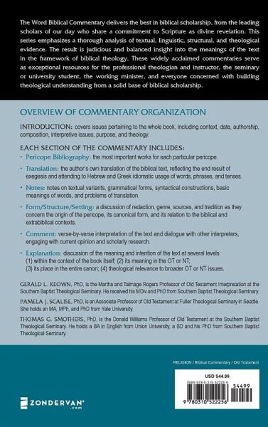 Over 2 million copies sold in The Word Biblical Commentary series. This commentary series delivers the best in biblical scholarship from the leading scholars of our day who share a commitment to Scripture as divine revelation. It emphasizes a thorough analysis of textual, linguistic, structural, and theological evidence, resulting in judicious and balanced insight into the meanings of the text in the framework of biblical theology. These widely acclaimed commentaries serve as exceptional resources for the professional theologian and instructor, the seminary or university student, the working minister, and everyone concerned with building theological understanding from a solid base of biblical scholarship. Overview of Commentary Organization: Introduction--covers issues pertaining to the whole book, including context, date, authorship, composition, interpretive issues, purpose, and theology. Pericope Bibliography--a helpful resource containing the most important works that pertain to each particular pericope. Translation--the author's own translation of the biblical text, reflecting the end result of exegesis and attending to Hebrew and Greek idiomatic usage of words, phrases, and tenses, yet in reasonably good English. Notes--the author's notes to the translation that address any textual variants, grammatical forms, syntactical constructions, basic meanings of words, and problems of translation. Form/Structure/Setting--a discussion of redaction, genre, sources, and tradition as they concern the origin of the pericope, its canonical form, and its relation to the biblical and extra-biblical contexts in order to illuminate the structure and character of the pericope. Rhetorical or compositional features important to understanding the passage are also introduced here. Comment--verse-by-verse interpretation of the text and dialogue with other interpreters, engaging with current opinion and scholarly research. Explanation--brings together all the results of the discussion in previous sections to expose the meaning and intention of the text at several levels: (1) within the context of the book itself; (2) its meaning in the OT or NT; (3) its place in the entire canon; (4) theological relevance to broader OT or NT issues. General Bibliography--occurring at the end of each volume, this extensive bibliography contains all sources used anywhere in the commentary.
