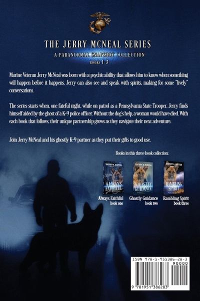 The Jerry McNeal Series, a Paranormal Snapshot Collection Volume 1 Marine Veteran Jerry McNeal was born with a psychic ability that allows him to know when something will happen before it happens. Jerry can also see and speak with spirits, making for some "lively" conversations. The series starts when, one fateful night, while on patrol as a Pennsylvania State Trooper, Jerry finds himself aided by the ghost of a K-9 police officer. Without the dog's help, a woman would have died. With each book that follows, their unique partnership grows as they navigate their next adventure. Join Jerry McNeal and his ghostly K-9 partner as they put their gifts to good use. Books in this three-book collection: Always Faithful - book one Ghostly Guidance - book two Rambling Spirit - book three