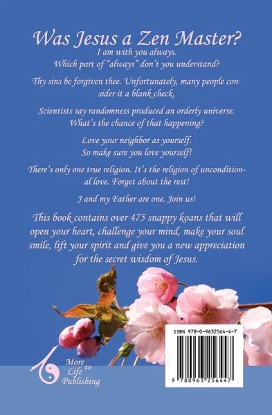 This is a gem of a book that will not fail to entertain, uplift and inspire. Short, snappy and sometimes humorous zen-like koans that give profound insights into the true, inner, mystical teachings of Jesus-and everyday life. It turns out Jesus was a Zen master, even before Zen had been "invented." The book is not organized in a linear fashion - in true Zen style - but gives commentary on a wide variety of topics that are of interest to all people who are open to the spiritual side of life. If you have had enough of the stuffy image of Jesus presented by mainstream Christianity, this book will give you a new appreciation for the depth of Jesus' mystical teachings. The book has short chapters, and each chapter consists of a number of short koans, most only a few lines long. It is therefore ideal as a relaxing meditation before going to sleep or for a few minutes of relief from a busy schedule. Simply a must-read for the spiritual seeker with a sense of curiosity and humor.