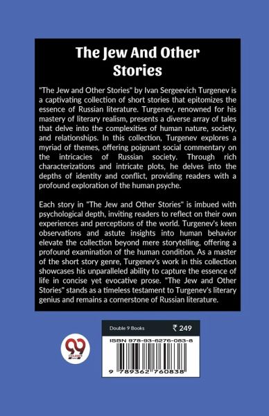 "The Jew and Other Stories" by Ivan Sergeevich Turgenev is a captivating collection of short stories that epitomizes the essence of Russian literature. Turgenev, renowned for his mastery of literary realism, presents a diverse array of tales that delve into the complexities of human nature, society, and relationships. In this collection, Turgenev explores a myriad of themes, offering poignant social commentary on the intricacies of Russian society. Through rich characterizations and intricate plots, he delves into the depths of identity and conflict, providing readers with a profound exploration of the human psyche. Each story in "The Jew and Other Stories" is imbued with psychological depth, inviting readers to reflect on their own experiences and perceptions of the world. Turgenev's keen observations and astute insights into human behavior elevate the collection beyond mere storytelling, offering a profound examination of the human condition. As a master of the short story genre, Turgenev's work in this collection showcases his unparalleled ability to capture the essence of life in concise yet evocative prose. "The Jew and Other Stories" stands as a timeless testament to Turgenev's literary genius and remains a cornerstone of Russian literature.