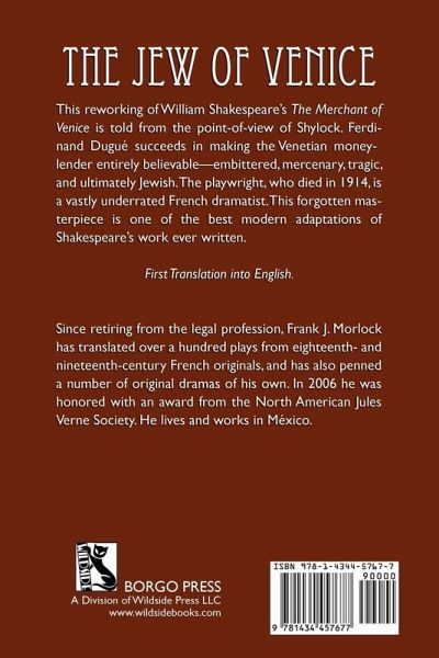 This forgotten masterpiece of French drama is a reworking of William Shakespeare's The Merchant of Venice--from the point-of-view of Shylock. Ferdinand Dugué succeeds in making the Venetian money-lender entirely believable--embittered, mercenary, tragic, and ultimately Jewish. One of the best modern adaptations of the Bard ever written.