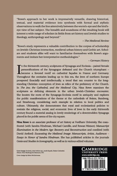 Introduction: the Jew, the cathedral and the city; Part I. Imagining Jews and Judaism in Life and Art: 1. The Jew in a Christian world: denunciation and restraint in the age of cathedrals; 2. Ecclesia and Synagoga: the life of a motif; Part II. Art and Life on the Ecclesiastical Stage - Three Case Studies: Introduction to Part II: nature, antiquity and sculpture in the early thirteenth century; 3. Reims: 'our Jews' and the royal sphere; 4. Bamberg: the empire, the Jews and earthly order; 5. Strasbourg: clerics, burghers and Jews in the medieval city; Epilogue: the afterlife of an image.