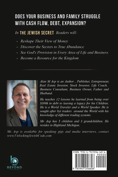 Does your business and family struggle with cash flow, debt, expansion? Unlock the key to true riches in Author Alan Asp's new book UNLOCKING JEWISH CODE get the new book everyone is talking about. Take charge of your finances, your future and your life. Finally control your money and stop letting your money control you.