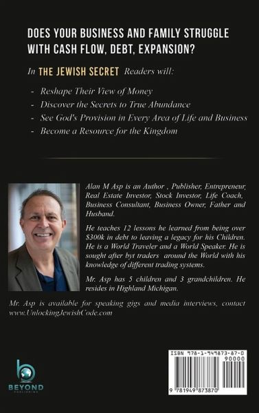 Does your business and family struggle with cash flow, debt, expansion? Unlock the key to true riches in Author Alan Asp's new book UNLOCKING JEWISH CODE get the new book everyone is talking about. Take charge of your finances, your future and your life. Finally control your money and stop letting your money control you.