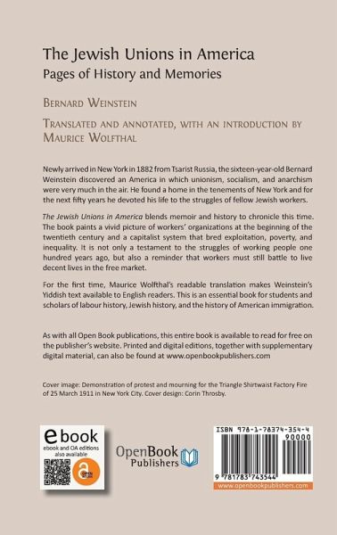 Newly arrived in New York in 1882 from Tsarist Russia, the sixteen-year-old Bernard Weinstein discovered an America in which unionism, socialism, and anarchism were very much in the air. He found a home in the tenements of New York and for the next fifty years he devoted his life to the struggles of fellow Jewish workers. The Jewish Unions in America blends memoir and history to chronicle this time. It describes how Weinstein led countless strikes, held the unions together in the face of retaliation from the bosses, investigated sweatshops and factories with the aid of reformers, and faced down schisms by various factions, including Anarchists and Communists. He co-founded the United Hebrew Trades and wrote speeches, articles and books advancing the cause of the labor movement. From the pages of this book emerges a vivid picture of workers' organizations at the beginning of the twentieth century and a capitalist system that bred exploitation, poverty, and inequality. Although workers' rights have made great progress in the decades since, Weinstein's descriptions of workers with jobs pitted against those without, and American workers against workers abroad, still carry echoes today. The Jewish Unions in America is a testament to the struggles of working people a hundred years ago. But it is also a reminder that workers must still battle to live decent lives in the free market. For the first time, Maurice Wolfthal's readable translation makes Weinstein's Yiddish text available to English readers. It is essential reading for students and scholars of labor history, Jewish history, and the history of American immigration.