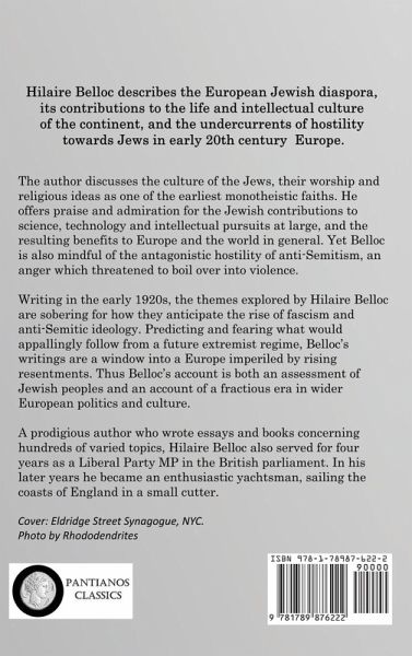 Hilaire Belloc describes the European Jewish diaspora, its contributions to the life and intellectual culture of the continent, and the undercurrents of hostility towards Jews in early 20th century Europe. The author discusses the culture of the Jews, their worship and religious ideas as one of the earliest monotheistic faiths. He offers praise and admiration for the Jewish contributions to science, technology and intellectual pursuits at large, and the resulting benefits to Europe and the world in general. Yet Belloc is also mindful of the antagonistic hostility of anti-Semitism, an anger which threatened to boil over into violence. Writing in the early 1920s, the themes explored by Hilaire Belloc are sobering for how they anticipate the rise of fascism and anti-Semitic ideology. Predicting and fearing what would appallingly follow from a future extremist regime, Belloc's writings are a window into a Europe imperiled by rising resentments. Thus Belloc's account is both an assessment of Jewish peoples and an account of a fractious era in wider European politics and culture. A prodigious author who wrote essays and books concerning hundreds of varied topics, Hilaire Belloc also served for four years as a Liberal Party MP in the British parliament. In his later years he became an enthusiastic yachtsman, sailing the coasts of England in a small cutter.