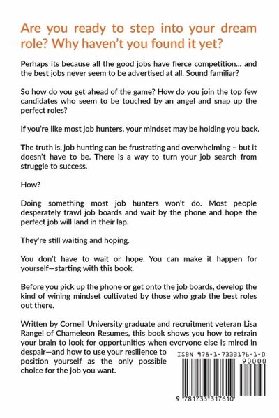 Are you ready to step into your dream role? Why haven't you done it yet? Perhaps its because all the good jobs have fierce competition... and the best jobs never seem to be advertised at all. Sound familiar? So how do you get ahead of the game? How do you join the top few candidates who seem to be touched by an angel and snap up the perfect roles? If you're like most job hunters, your mindset may be holding you back. The truth is, job hunting can be frustrating and overwhelming - but it doesn't have to be. There is a way to turn your job search from struggle to success. How? Doing something most job hunters won't do. Most people desperately trawl job boards and wait by the phone and hope the perfect job will land in their lap. They're still waiting and hoping. You don't have to wait or hope. You can make it happen for yourself. The big secret is: you are in control of landing your dream role - not recruiters, the job market, or the economy. How? By realising that it takes more than the right tactic or strategy and cultivating a mindset that's been used by thousands of job hunters to find their dream roles. The Job Landing Mindset gives you everything you need to turn around your job hunting struggles and create a winning mindset. Written by Cornell University graduate and recruitment veteran Lisa Rangel of Chameleon Resumes, you'll learn how to retrain your brain to look for opportunities when everyone else is mired in despair - and how to use your resilience to position yourself as the only possible choice for the job you want. Lisa has used this exact blueprint to work with thousands of job hunters to land their dream jobs in 67 countries. The Job Landing Mindset helps you step out of job hunting misery and into your dream role - without the desperate scramble most job searches entail. This book is all you need to get your head in the right place - because all the tactics and techniques in the world won't do you any good without a winning mindset.