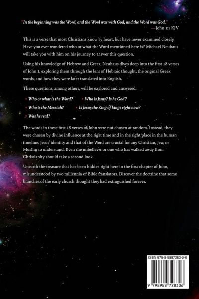 Who is the Messiah and was he real? Who is this Jesus that we hear about and is claimed as God, yet millions continue to profit off of his name even though they call him God. Is Jesus God? Is Jesus the King of Kings right now? Who is the Word of God speaking of in John 1:1? These questions and more will be explored, sought, found, proven and looked at through the lens of Hebraic words and the translated words into Greek and then English. Showing how these words in the first eighteen verses of John in Greek were chosen by divine influence at the right time and right place in the human timeline. Sharing this piece of his journey, which Michael finds of the utmost importance to any Christian, Jew or Muslim's belief system, is crucial to any of the Abrahamic faiths. Even the unbeliever or one who has walked away from Christianity should take a second look and see what has been right there all along yet misunderstood by two millennia of translators based on a doctrine the early church thought they extinguished.