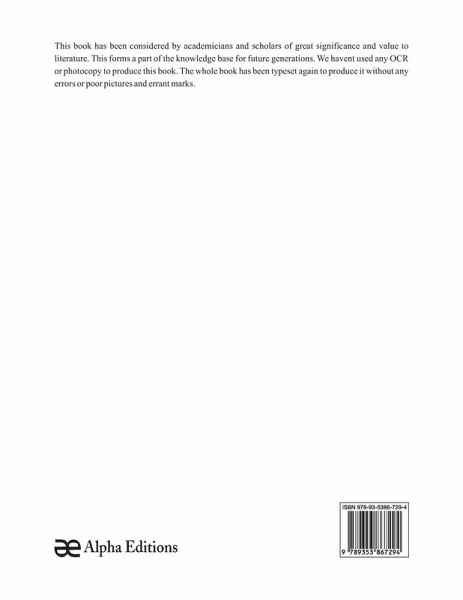 This book has been considered by academicians and scholars of great significance and value to literature. This forms a part of the knowledge base for future generations. So that the book is never forgotten we have represented this book in a print format as the same form as it was originally first published. Hence any marks or annotations seen are left intentionally to preserve its true nature.