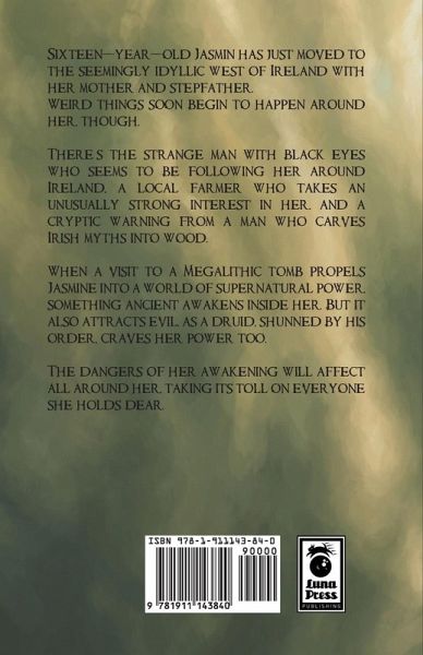 Sixteen-year-old Jasmin has just moved to the seemingly idyllic west of Ireland with her mother and stepfather. Weird things soon begin to happen around her, though. There's the strange man with black eyes who seems to be following her around Ireland, a local farmer who takes an unusually strong interest in her, and a cryptic warning from a man who carves Irish myths into wood. When a visit to a Megalithic tomb propels Jasmine into a world of supernatural power, something ancient awakens inside her. But it also attracts evil, as a druid, shunned by his order, craves her power too. The dangers of her awakening will affect all around her, taking its toll on everyone she holds dear.