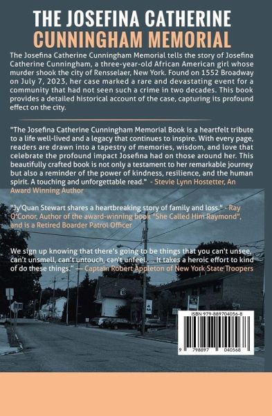 The Josefina Catherine Cunningham Memorial Second Edition tells the story of Josefina Catherine Cunningham, a three-year-old African American girl whose murder shook the city of Rensselaer, New York. Found on 1552 Broadway on July 7, 2023, her case marked a rare and devastating event for a community that had not seen such a crime in two decades. This book provides a detailed historical account of the case, capturing its profound effect on the city of Rensselaer as a whole.