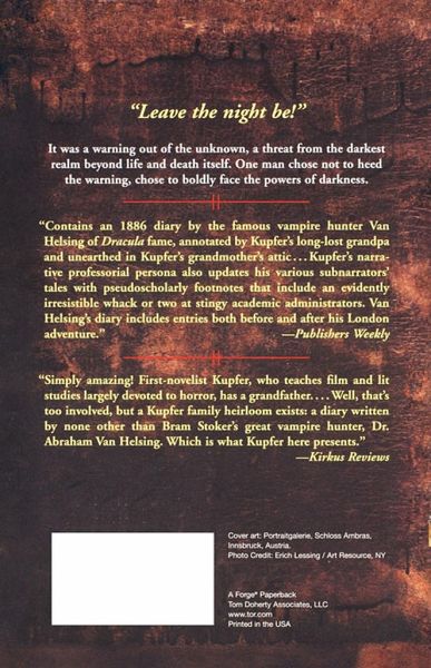 Professor Abraham Van Helsing was the fictional creation of Bram Stoker for his dark work of fantasy Dracula ...or was he? Fragments of a recently discovered journal suggest otherwise. For the first time, in his own words, the legendary vampire hunter tells his own story - his background and early years - his research in Rumania and the Mideast - his medical work ...and most importantly his discovery of perhaps the greatest threat to man's dominion on earth, vampires. Filled with data to inform, and tips to educate, the journal is more than a study of vampirism. It is also the story of a man's obsession with eradicating the world of its greatest scourge, a dark evil that claimed his wife in its thrall. Working with the textural fragments he inherited from his grandfather, Professor Allen Conrad Kupfer, has managed to piece together the story behind the story that did not begin and end with Bram Stoker's Dracula.